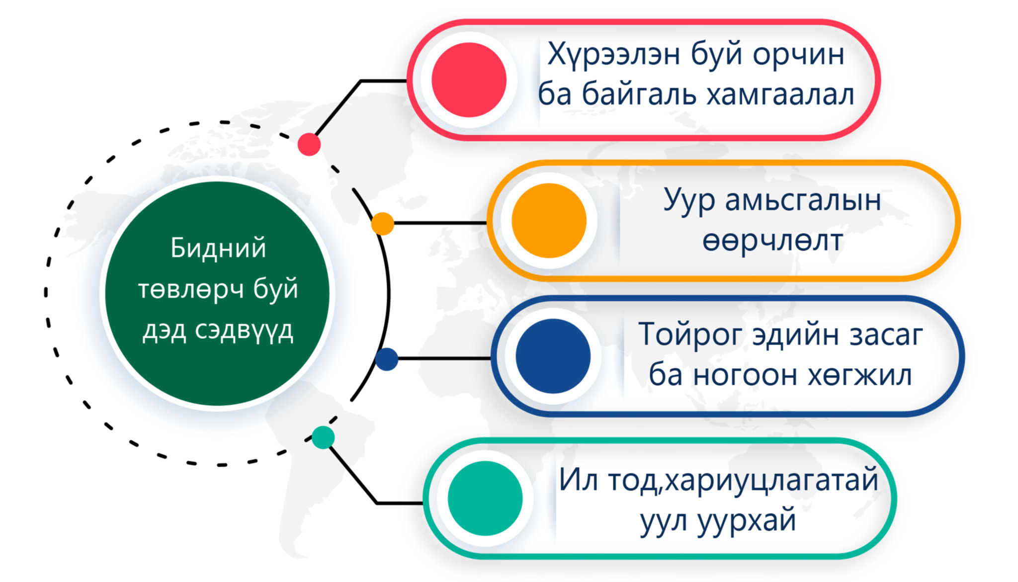 Уур амьсгалын өөрчлөлт, тогтвортой хөгжлийн сорилтуудыг шийдвэрлэх бидний арга барилын гол тулгуур нь уур амьсгалын өөрчлөлтөд тэсвэртэй хөгжил (Climate-resilient development)-ийн аспектийг бүх салбарын судалгаа, ХШҮ-ний төслүүдэд харгалзах явдал юм. Уг ойлголт нь уур амьсгалын өөрчлөлтөд дасан зохицох (adaptation), сааруулах (mitigation) арга замуудыг хослуулсан чиг хандлага бөгөөд эдгээр асуудлыг бүх л салбарын бодлого төлөвлөлт, шийдвэр гаргалт, хөрөнгө оруулалтын үйл явцад харгалзсанаар бид уур амьсгалын өөрчлөлтийн эдийн засаг, экосистем, олон нийтэд үзүүлэх нөлөөллийг бууруулж, тэсвэртэй байдлыг бий болгоход өөрсдийн хувь нэмрээ оруулахыг зорьдог.
